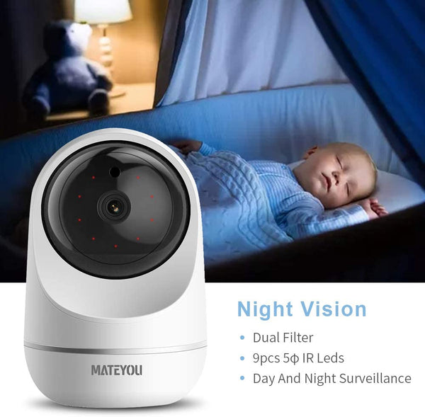 MATEYOU 1080P Cámara de Vigilancia para Bebe con Visión Nocturna, Cámara de Seguridad compatible con Alexia, Cámaras inalambricas para seguridad en el hogar, con la cual puedes vigilar a tu bebe, anciano o mascota.