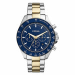 Este Neale de 1.811 in cuenta con una esfera azul con índices de palo, movimiento de cronógrafo y pulsera de acero inoxidable.