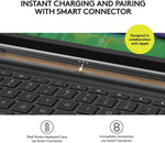 - Alimentado por iPad a través del conector inteligente de Apple. Se conecta al instante con un clic. No necesita pilas ni Bluetooth.