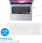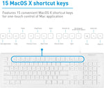 - EZ Shortcuts: Nuestro teclado USB fue creado para ser fácil de usar. Hay 15 teclas de acceso directo específicas de Apple (cortar/copiar/pegar/itunes/volumen/etc.). Teclas multimedia para Windows PC. Esto te permitirá navegar rápidamente y entrar comandos.